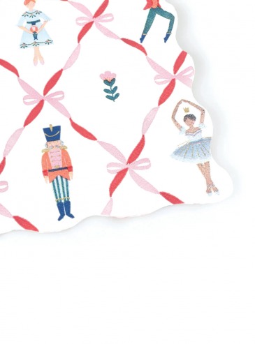 Εμπνευσμένες από το κλασικό μπαλέτο Καρυοθραύστης, αυτές οι premium χαρτοπετσέτες συνδυάζουν παραδοσιακά χριστουγεννιάτικα χρώματα με μοντέρνες λεπτομέρειες. Διακοσμημένες με εμβληματικούς χαρακτήρες και φιόγκους, φέρνουν τη μαγεία των γιορτών κατευθείαν στο τραπέζι σας.