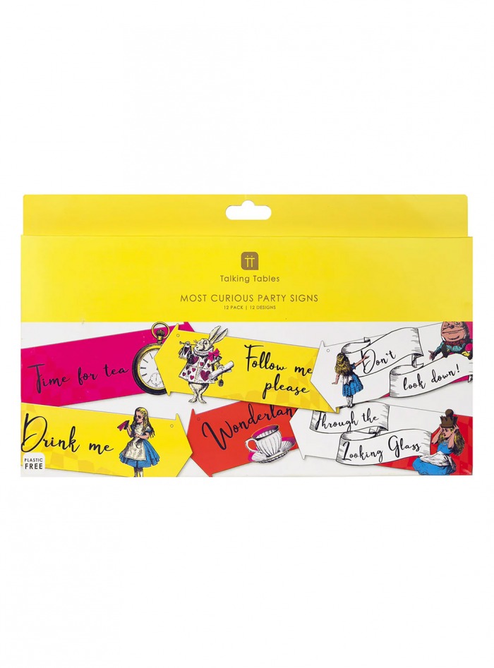 Δείξτε τον δρόμο για τη μαγεία με αυτές τις διακοσμητικές πινακίδες για θεματικά πάρτι από τη συλλογή Alice Brights. Το σετ περιλαμβάνει 12 χαρούμενες πινακίδες, διακοσμημένες με εμβληματικούς χαρακτήρες από την ιστορία της Αλίκης και έντονα χρώματα που τραβούν το βλέμμα.