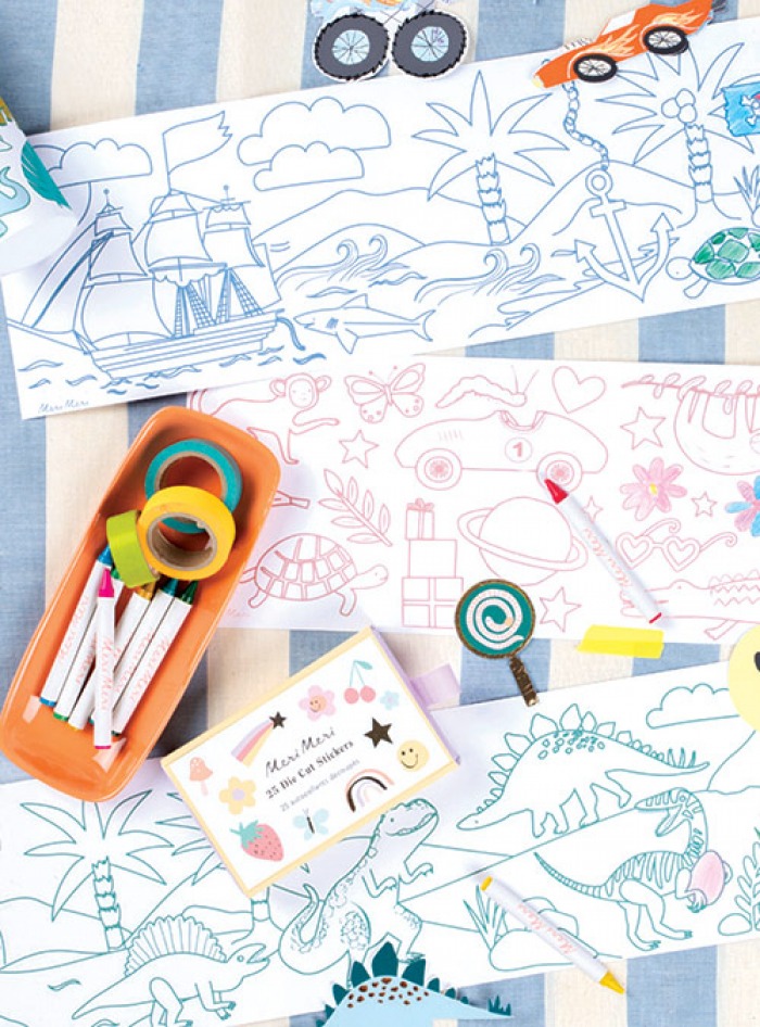 Includes a colouring roll, with 9 perforated sections with pirate-themed icons to colour in