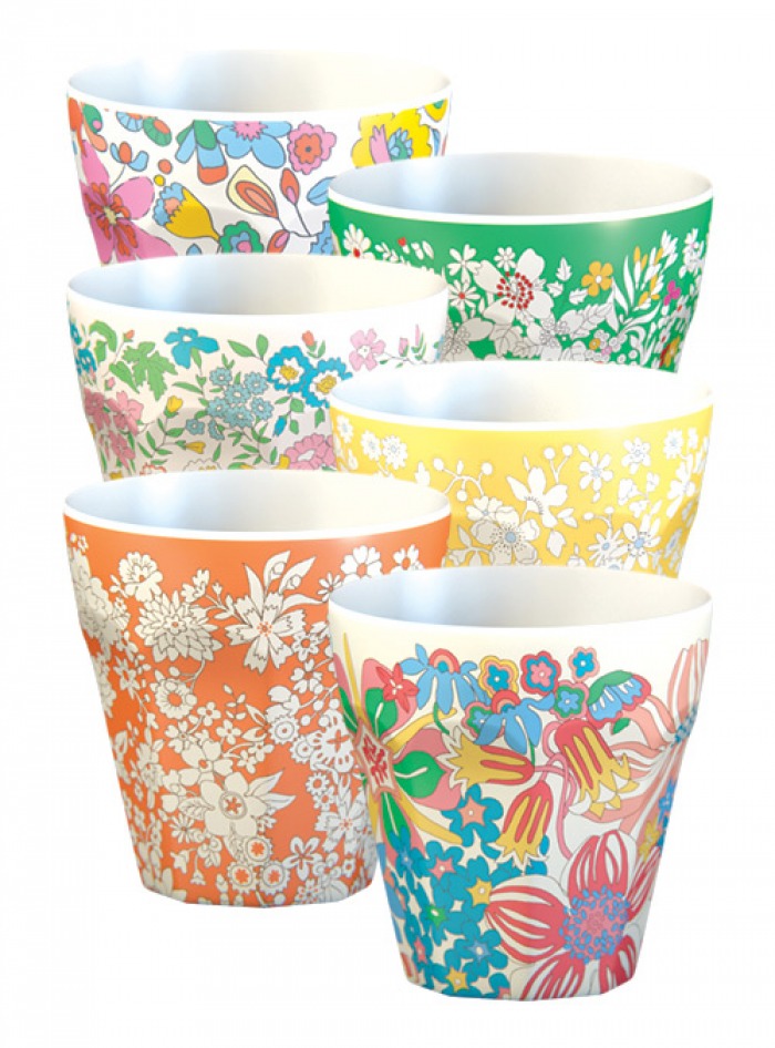 One cup set, hundreds of parties! We've teamed up with Liberty to give you sophisticated and reusable tableware. These melamine cups each have a different Liberty print design to complement any party theme or special meals. Use again and again for indoor or outdoor occasions, like garden parties, picnics or afternoon tea. They are packaged in a box with a Liberty print design, ideal to store them in when not in use, which is very giftable too.