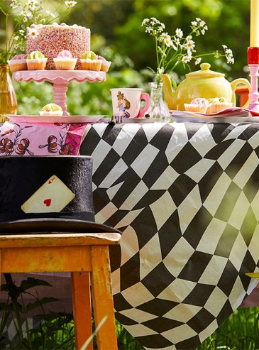 Ασπράμαυρο Καρό Τραπεζομάντιλο για Θεματικά Πάρτι – Συλλογή Alice Brights