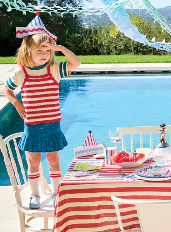 Θαλασσινή διάθεση στο πάρτι με τα ριγέ ναυτικά ποτήρια πάρτι σε κόκκινο,