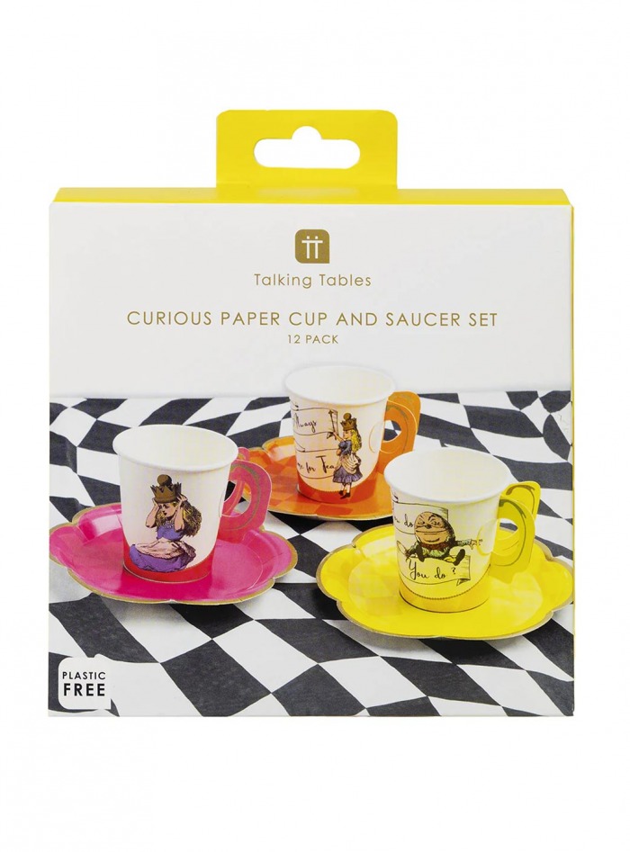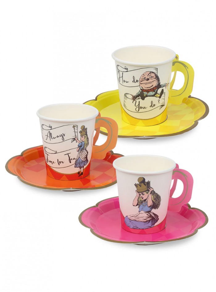 Όπως λέει και η Αλίκη, «Πάντα υπάρχει χρόνος για τσάι», και κανένα τσάι δεν ολοκληρώνεται χωρίς τα κατάλληλα φλιτζάνια και πιατάκια! Αυτό το σετ περιλαμβάνει 12 χάρτινα φλιτζάνια και πιατάκια Alice, σε τρία μοναδικά σχέδια που συνδυάζουν ζωντανά, φωτεινά χρώματα με τις κλασικές εικονογραφήσεις και έξυπνες φράσεις που σίγουρα θα φέρουν χαμόγελα σε όλους τους καλεσμένους.